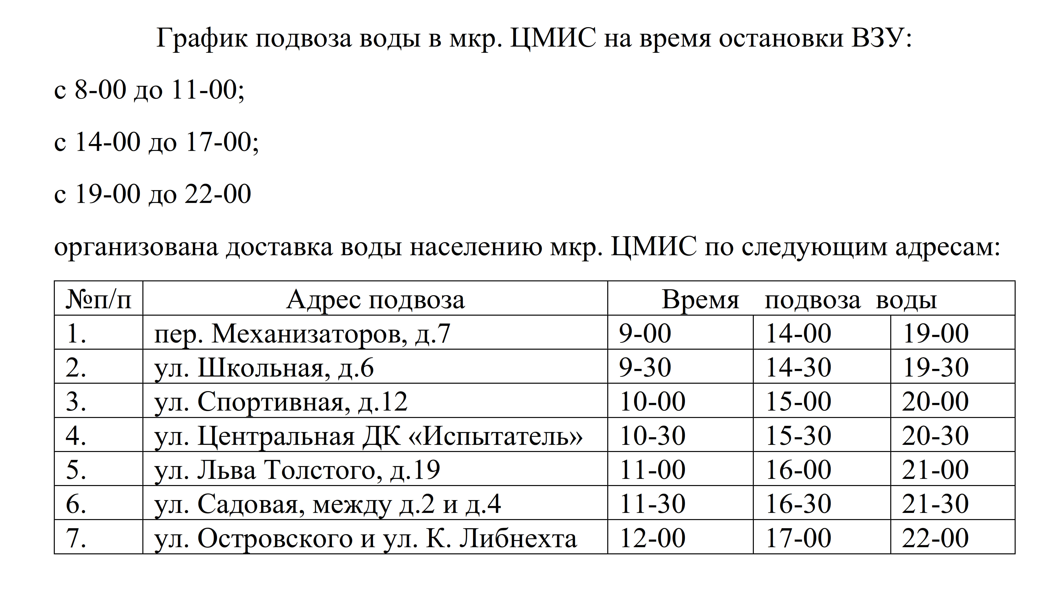 16.11.24г. с 10:00 до окончания работ ( сроком на 10 дней), в связи с аварийно-ремонтными работами будет, прекращена подача ХВС по следующим адресам: