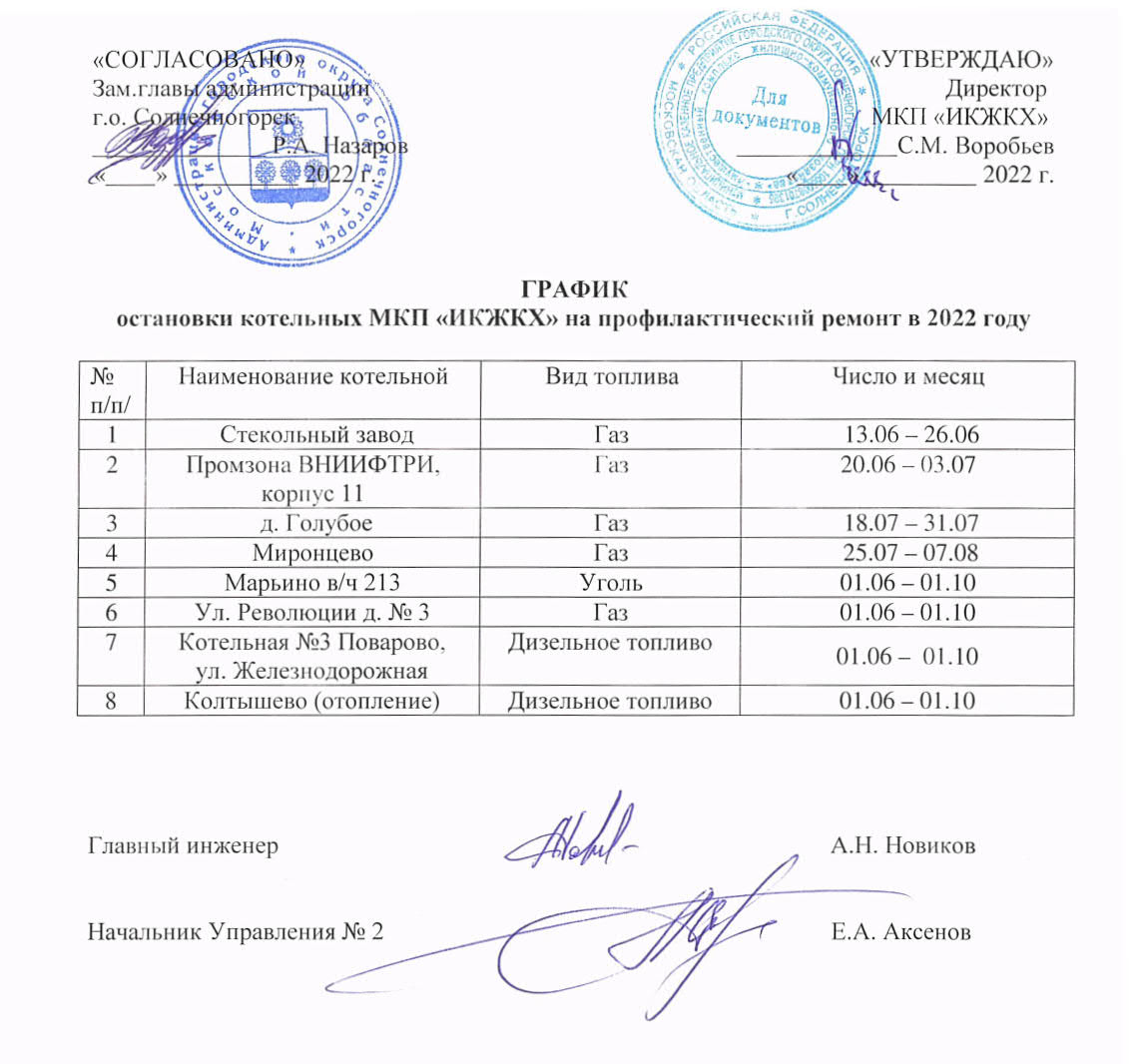 График остановки котельных МКП ИКЖКХ на ППР 2022г.